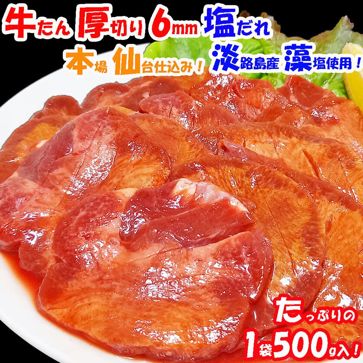 ・牛タン厚切り6mmスライス!切り目を入れて自家製塩タレ味でじっくり味付けしました!淡路島産の藻塩(もしお)を使用してますので自然の風味がお肉との相性抜群です!深いコクと香り、ご家庭のフライパンで簡単調理!牛たんの一品料理・牛たん定食・牛たん丼と色んな料理に大活躍です!焼肉パーティ・bbqにもオススメする逸品です!本格的な味わいをご家庭でお楽しみください!
